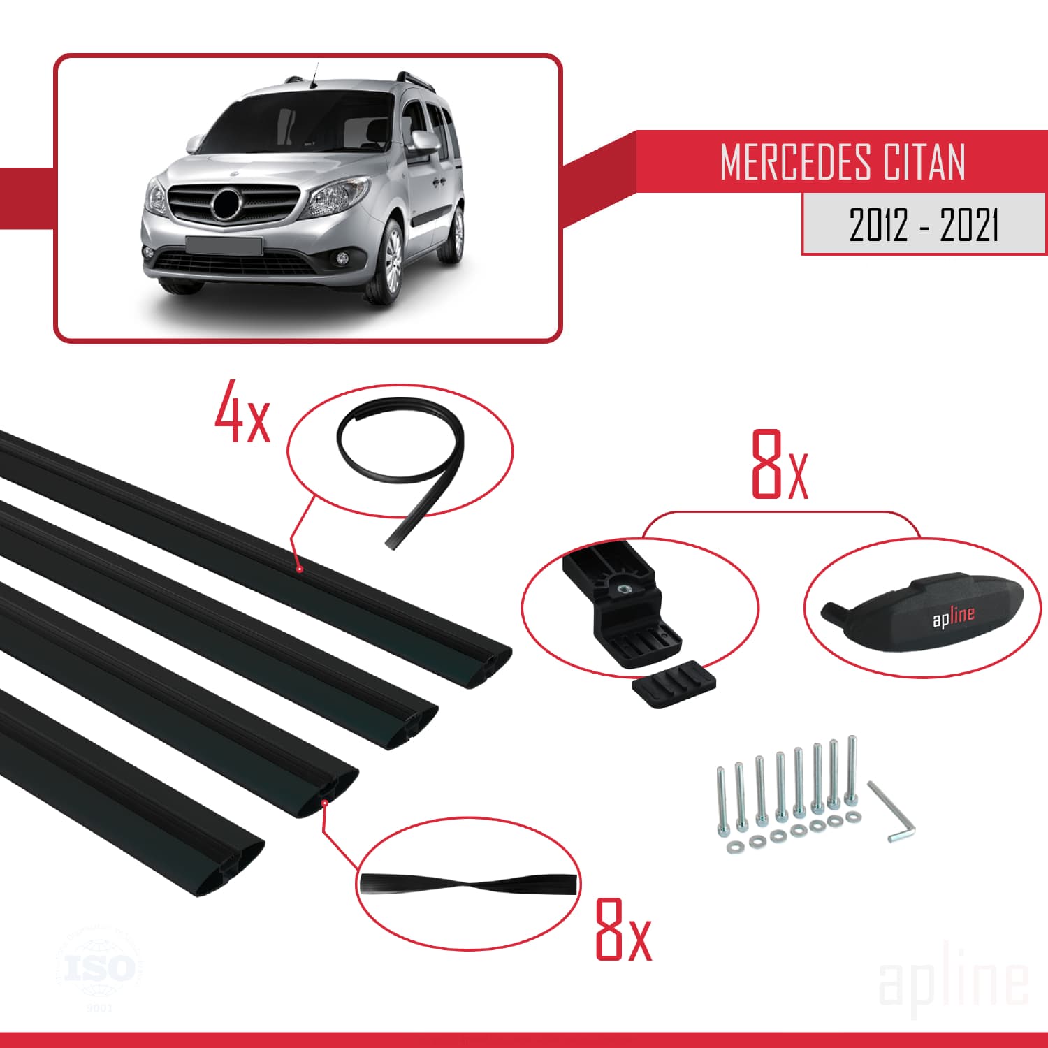 Compatible avec Mercedes Citan (W415) 2012-2021 BASIC Model Barres de Toit Railing Porte-Bagages de Voiture Noir Aluminium 4 Barres