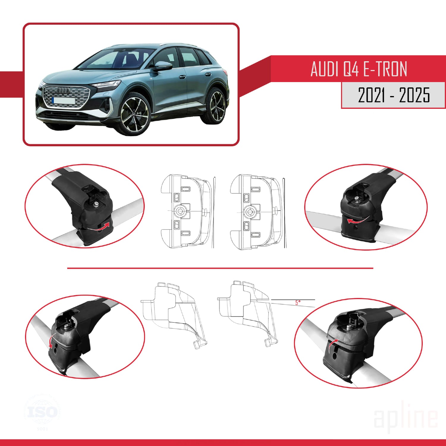 Compatible avec Q4 (F4) E-Tron 2021-2025 ACE-2 Barres de Toit Railing Porte-Bagages de Voiture Gris Aluminium 2 Barres