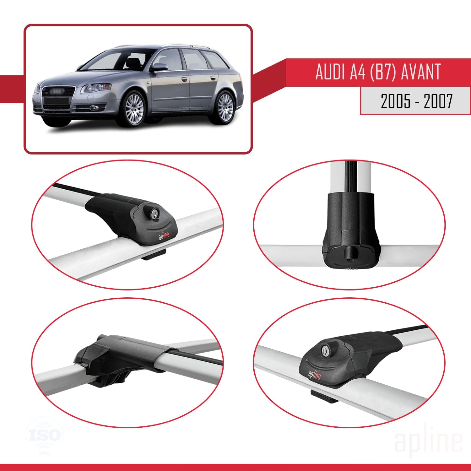 Compatible avec A4 (B7) Avant 2005-2007 ACE-1 Barres de Toit Railing Porte-Bagages de Voiture Gris Aluminium 3 Barres