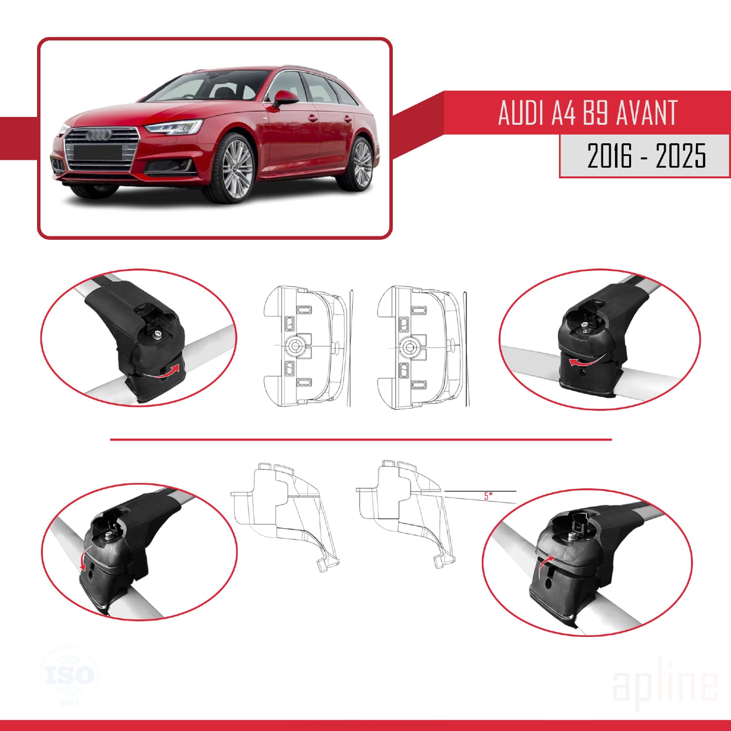 Compatible avec A4 (B9) Avant 2016-2025 ACE-2 Barres de Toit Railing Porte-Bagages de Voiture Gris Aluminium 2 Barres