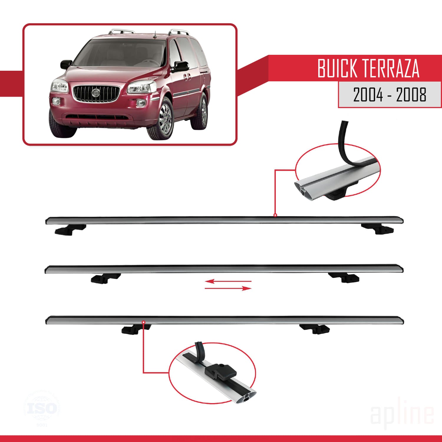 Compatible avec Buick Terraza CXL 2004-2008 BASIC Model Barres de Toit Railing Porte-Bagages de Voiture Gris Aluminium 3 Barres
