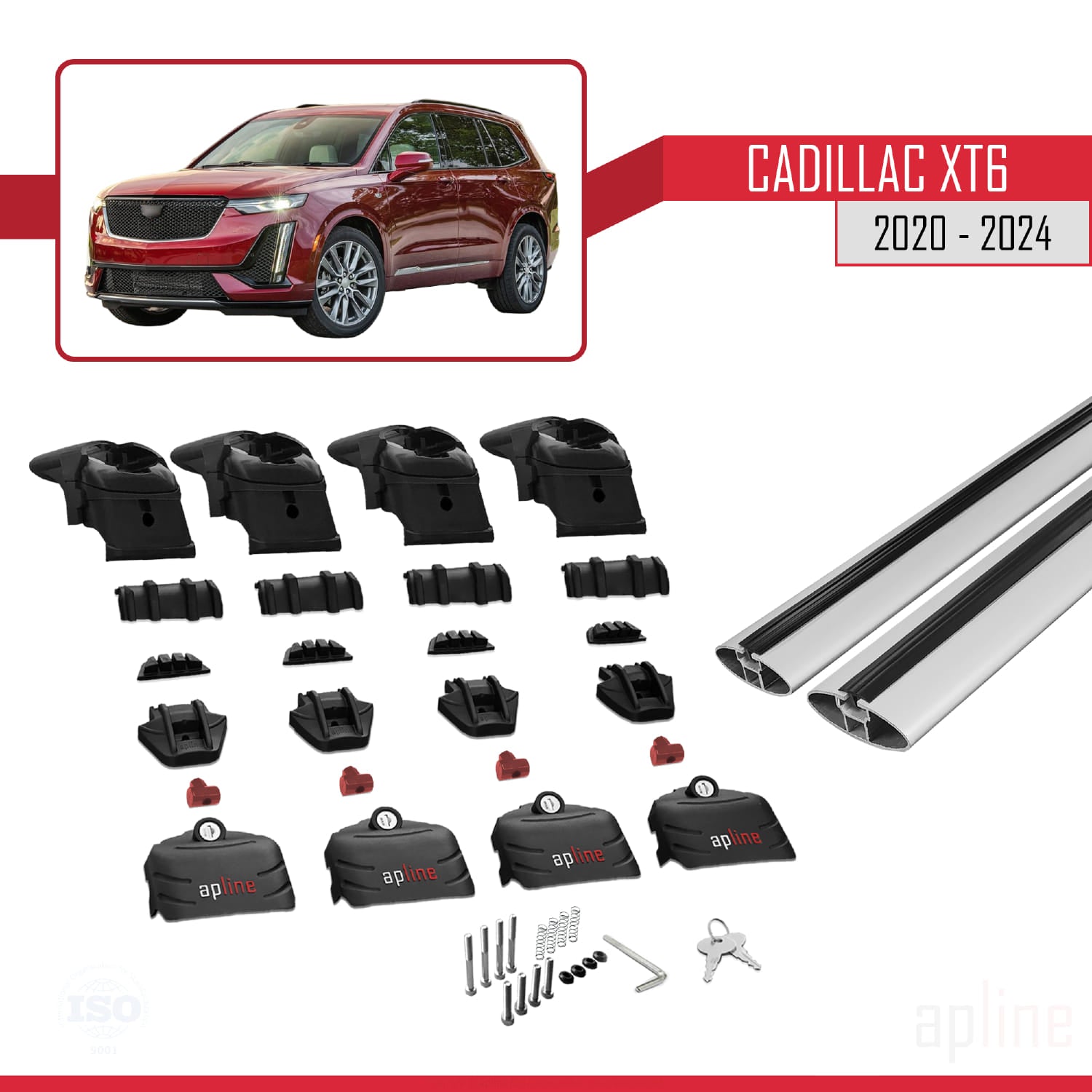 Compatible avec Cadillac XT6 2020-2024 ACE-2 Barres de Toit Railing Porte-Bagages de Voiture Gris Aluminium 2 Barres