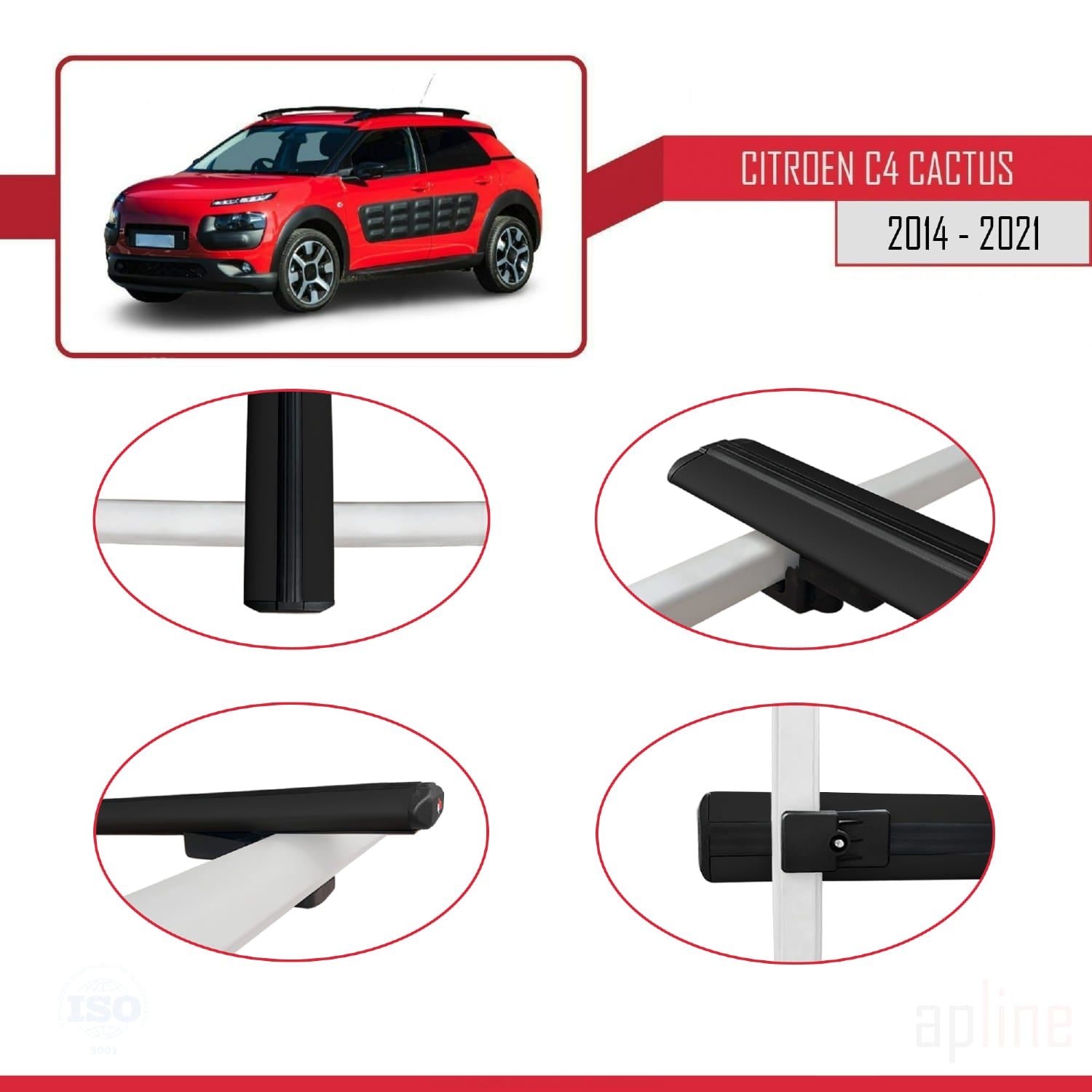 Compatible avec Citroen C4 Cactus 2014-2021 BASIC Model Barres de Toit Railing Porte-Bagages de Voiture Noir Aluminium 2 Barres