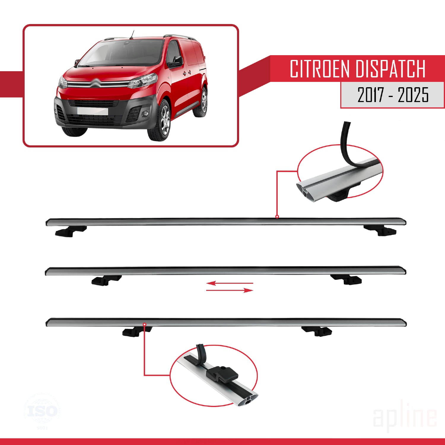 Compatible avec Citroen Dispatch (K0) 2017-2025 BASIC Model Barres de Toit Railing Porte-Bagages de Voiture Gris Aluminium 2 Barres