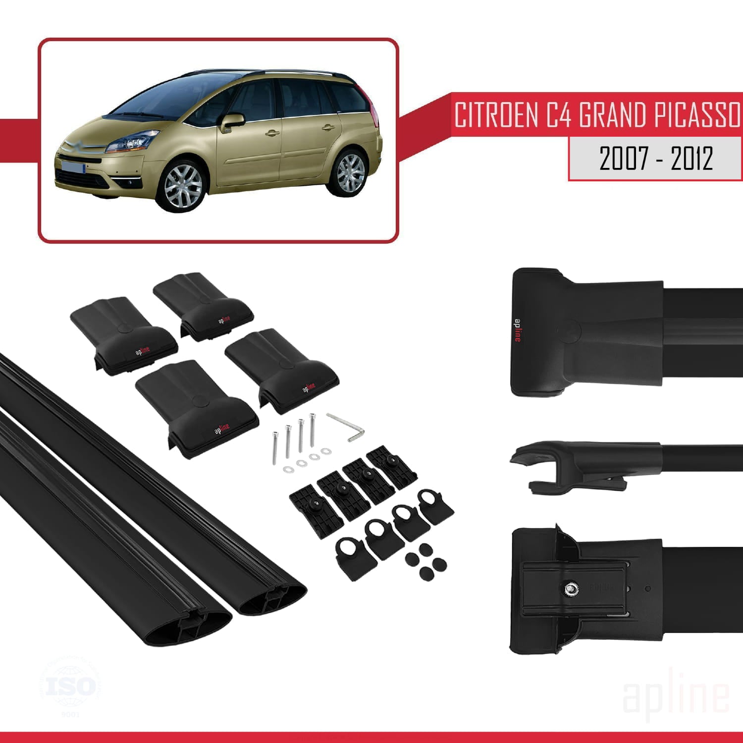 Compatible avec Citroen Grand C4 Picasso 2007-2012 FLY Model Barres de Toit Railing Porte-Bagages de Voiture Noir Aluminium 2 Barres