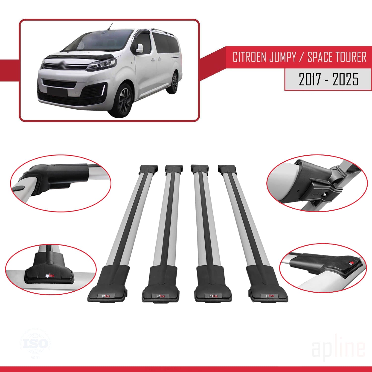 Compatible avec Citroen Jumpy 3 (K0) Space Tourer 2017-2025 FLY Model Barres de Toit Railing Porte-Bagages de Voiture Gris Aluminium 4 Barres