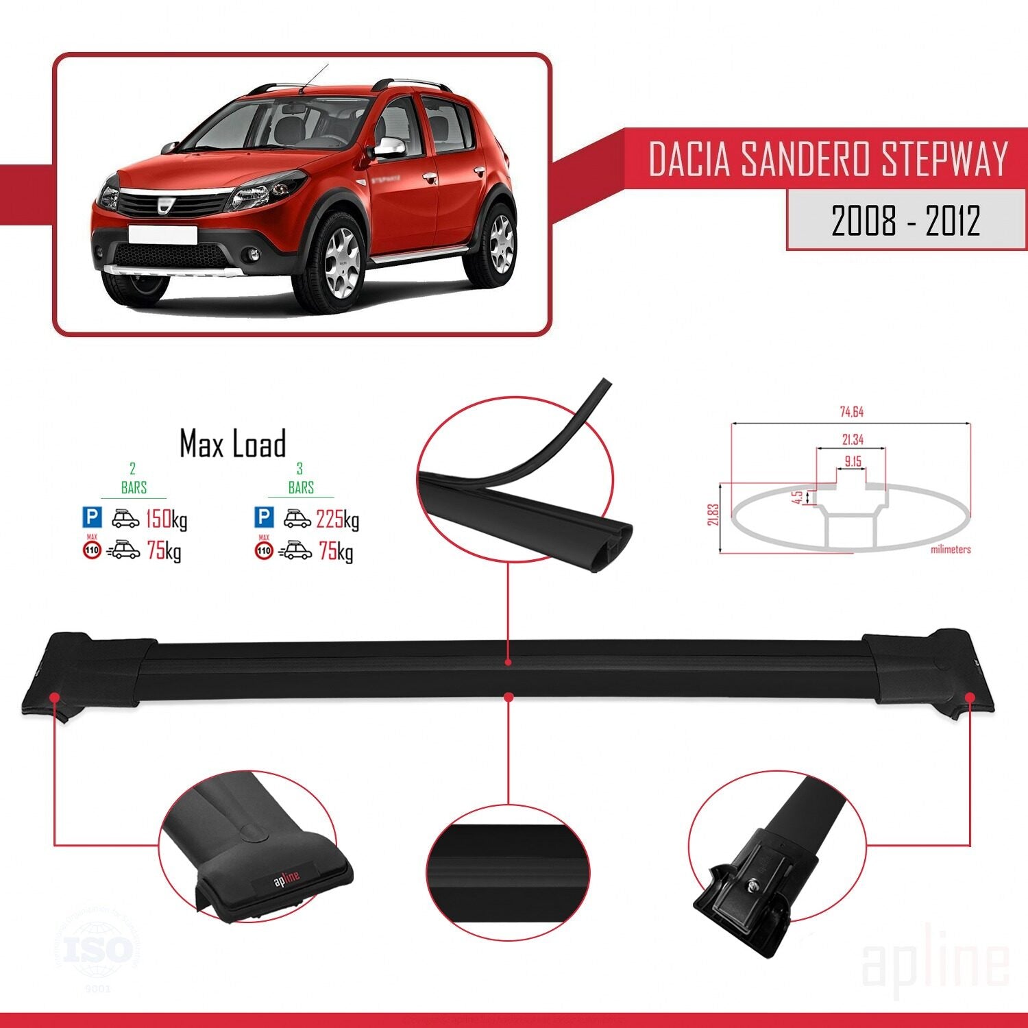 Compatible avec Dacia Sandero Stepway 2008-2012 FLY Model Barres de Toit Railing Porte-Bagages de Voiture Noir Aluminium 2 Barres