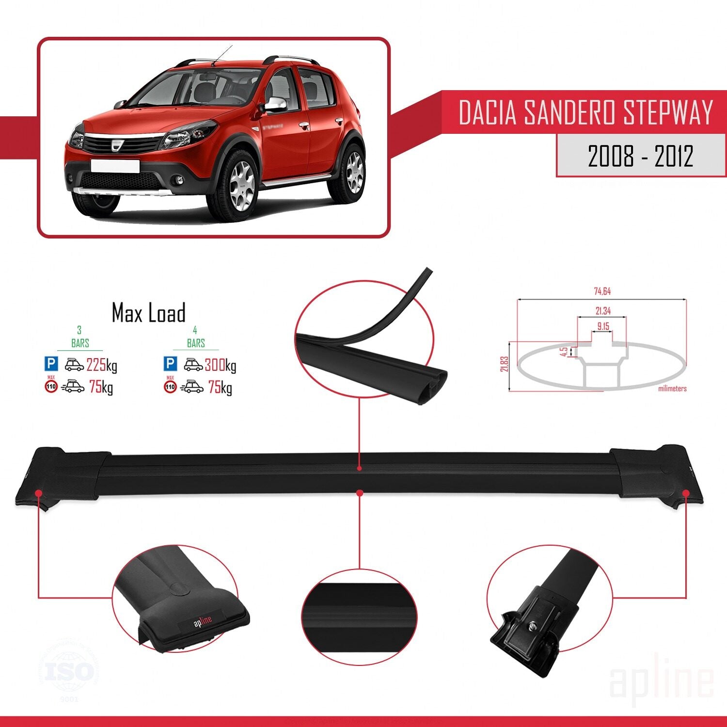 Compatible avec Dacia Sandero Stepway 2008-2012 FLY Model Barres de Toit Railing Porte-Bagages de Voiture Noir Aluminium 3 Barres