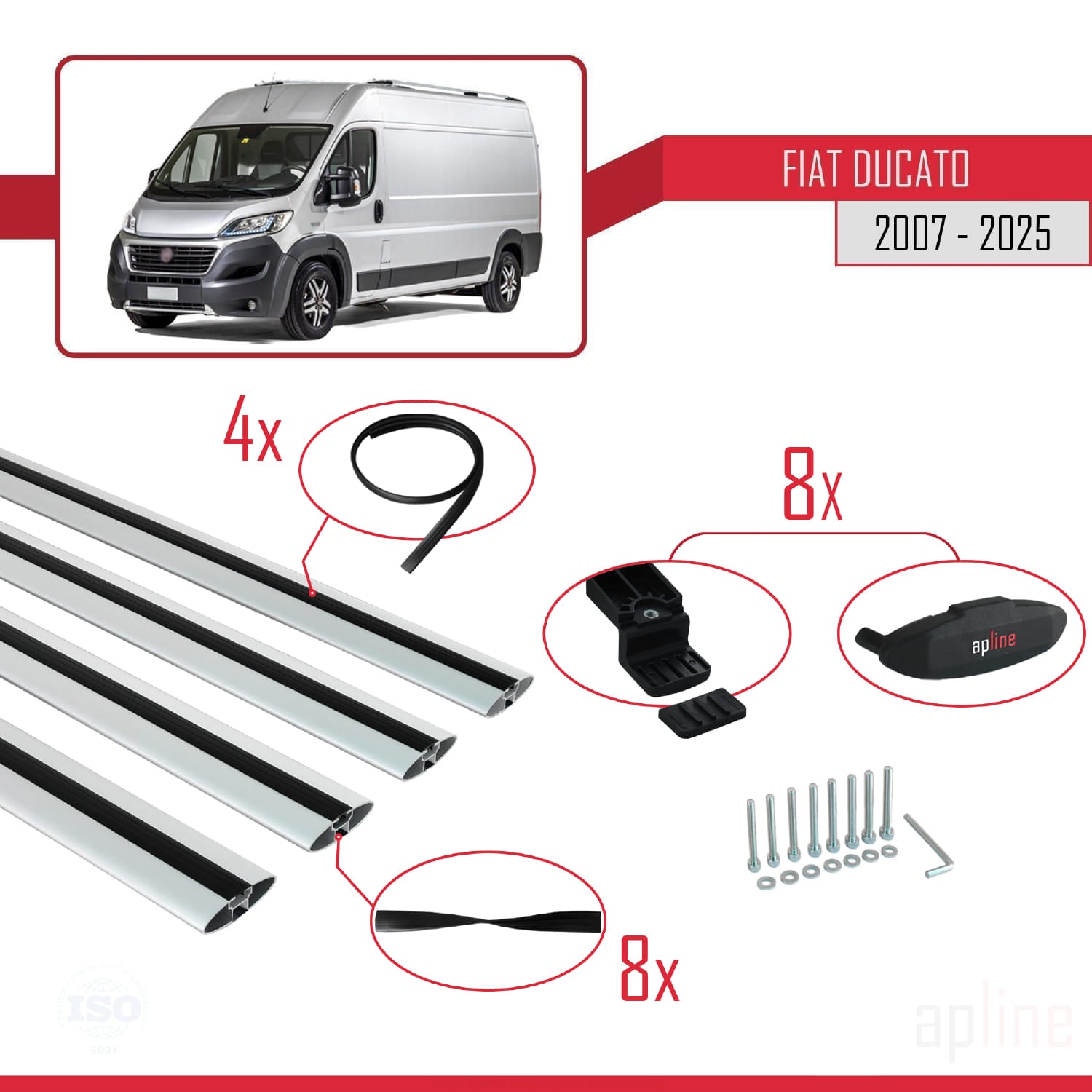 Compatible avec Fiat Ducato 3 2007-2025 BASIC Model Barres de Toit Railing Porte-Bagages de Voiture Gris Aluminium 4 Barres