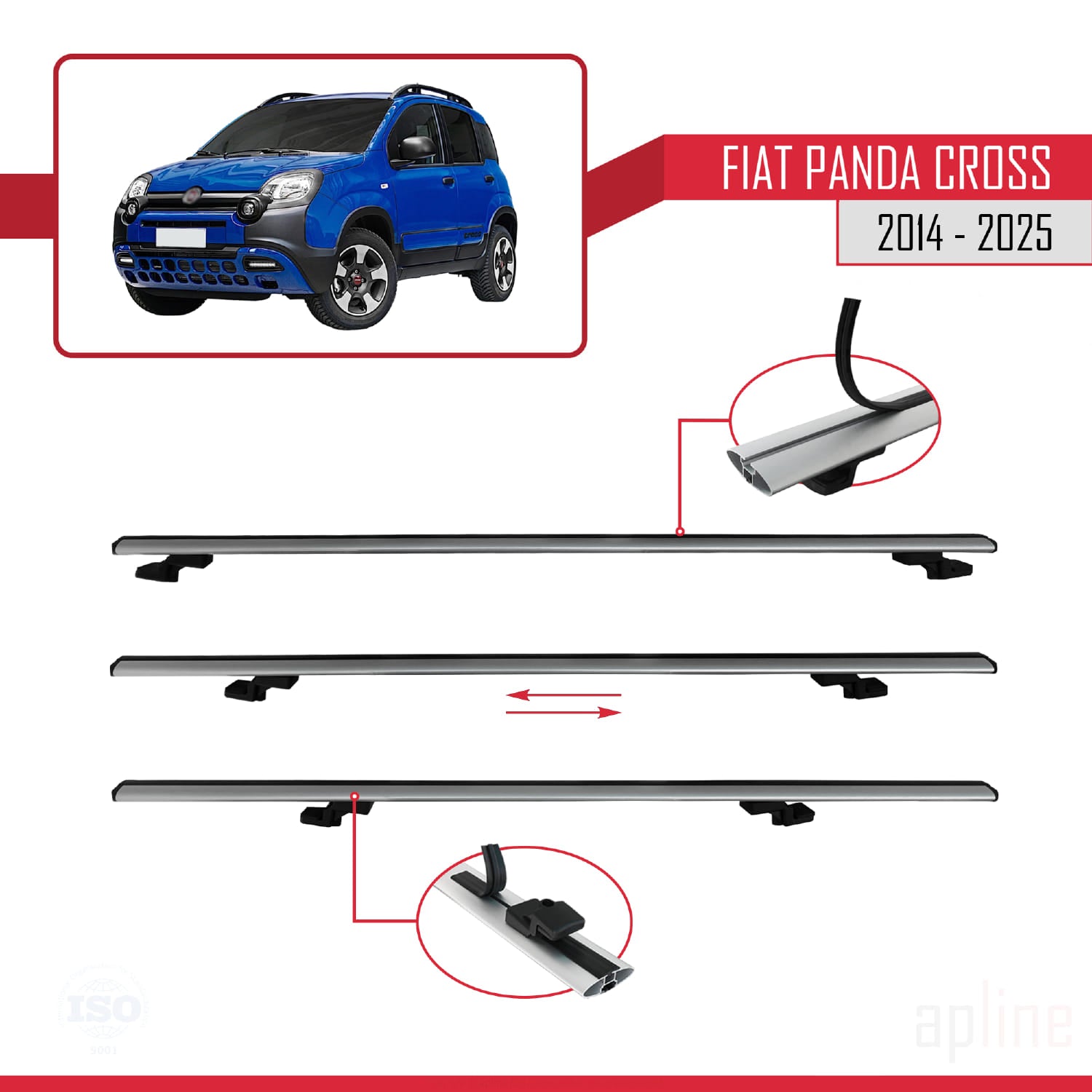 Compatible avec Fiat Panda Cross 2014-2025 BASIC Model Barres de Toit Railing Porte-Bagages de Voiture Gris Aluminium 2 Barres