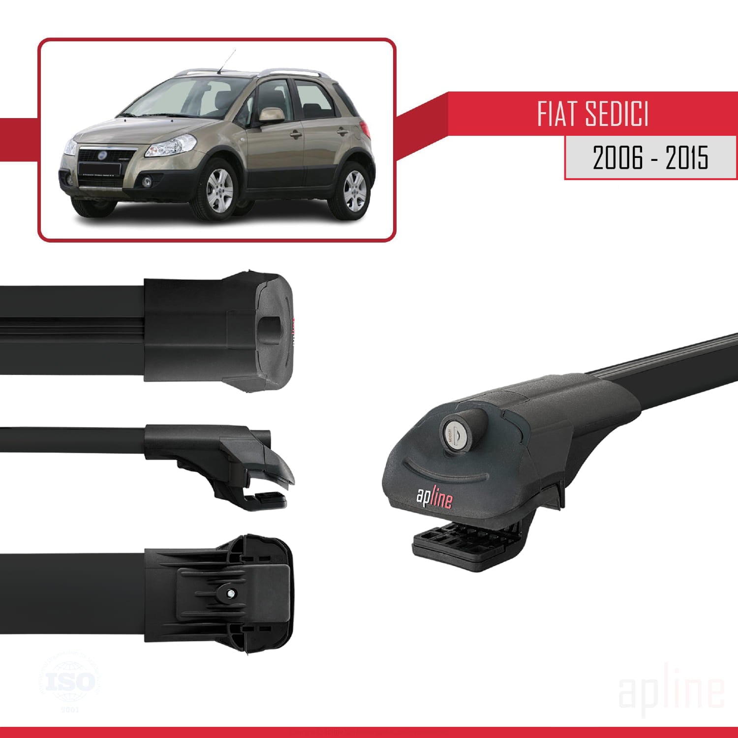 Compatible avec Fiat Sedici 2006-2015 ACE-1 Barres de Toit Railing Porte-Bagages de Voiture Noir Aluminium 3 Barres