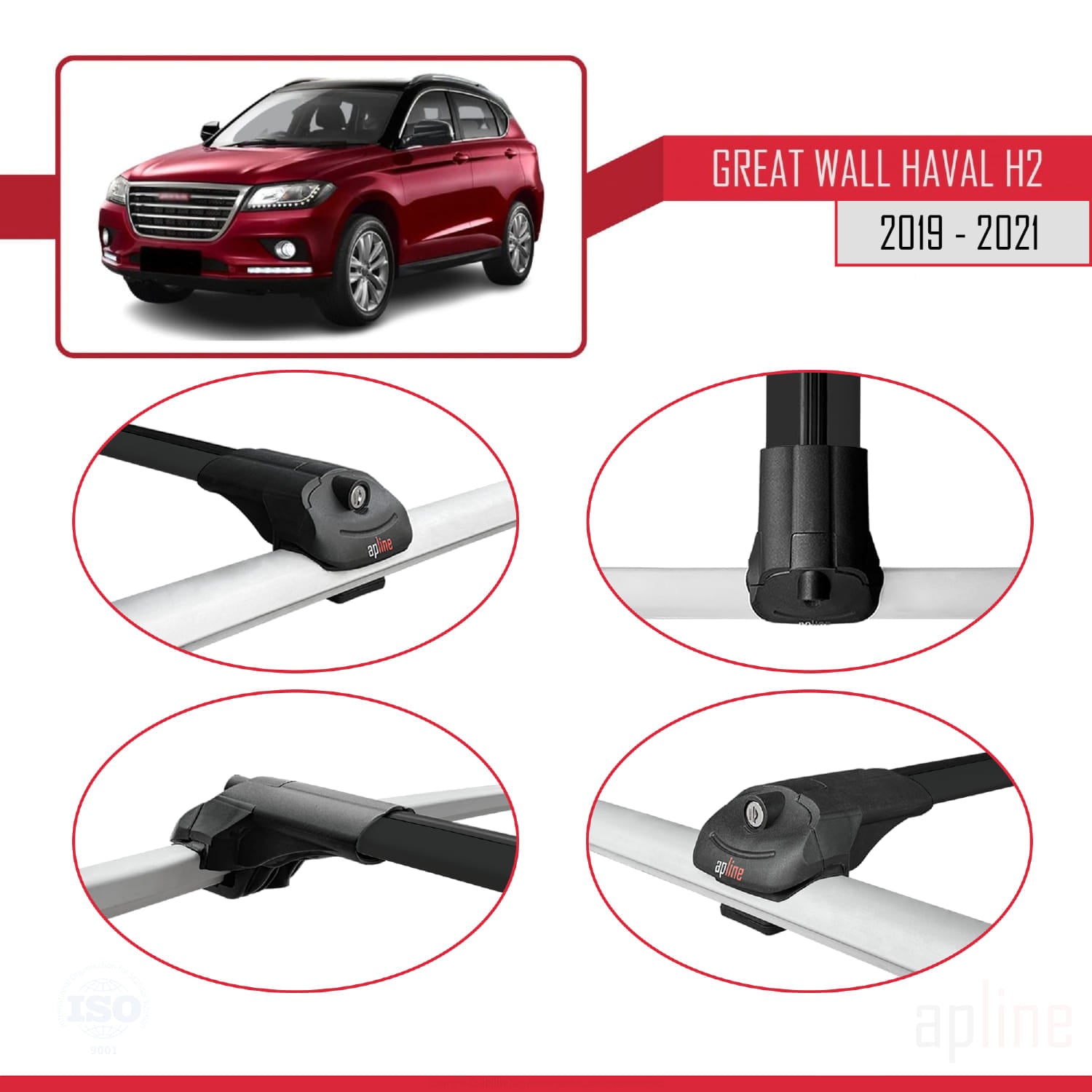 Compatible avec Great Wall Haval H2 2019-2021 ACE-1 Barres de Toit Railing Porte-Bagages de Voiture Noir Aluminium 2 Barres