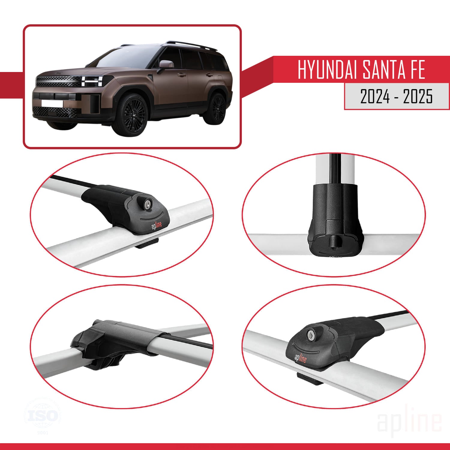 Compatible avec Hyundai Santa Fe 2024-2025 ACE-1 Barres de Toit Railing Porte-Bagages de Voiture Gris Aluminium 3 Barres