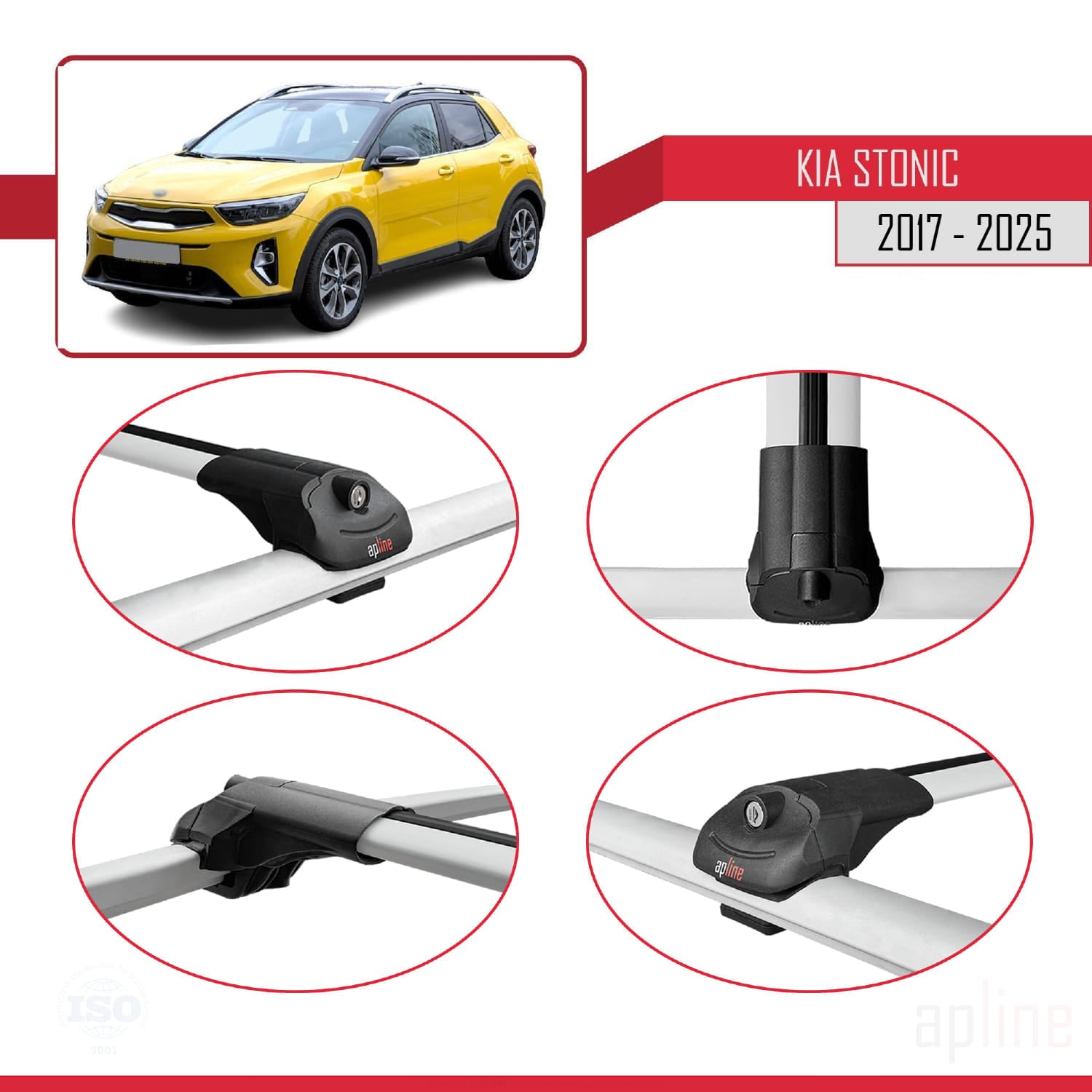 Compatible avec Kia Stonic 2017-2025 ACE-1 Barres de Toit Railing Porte-Bagages de Voiture Gris Aluminium 3 Barres