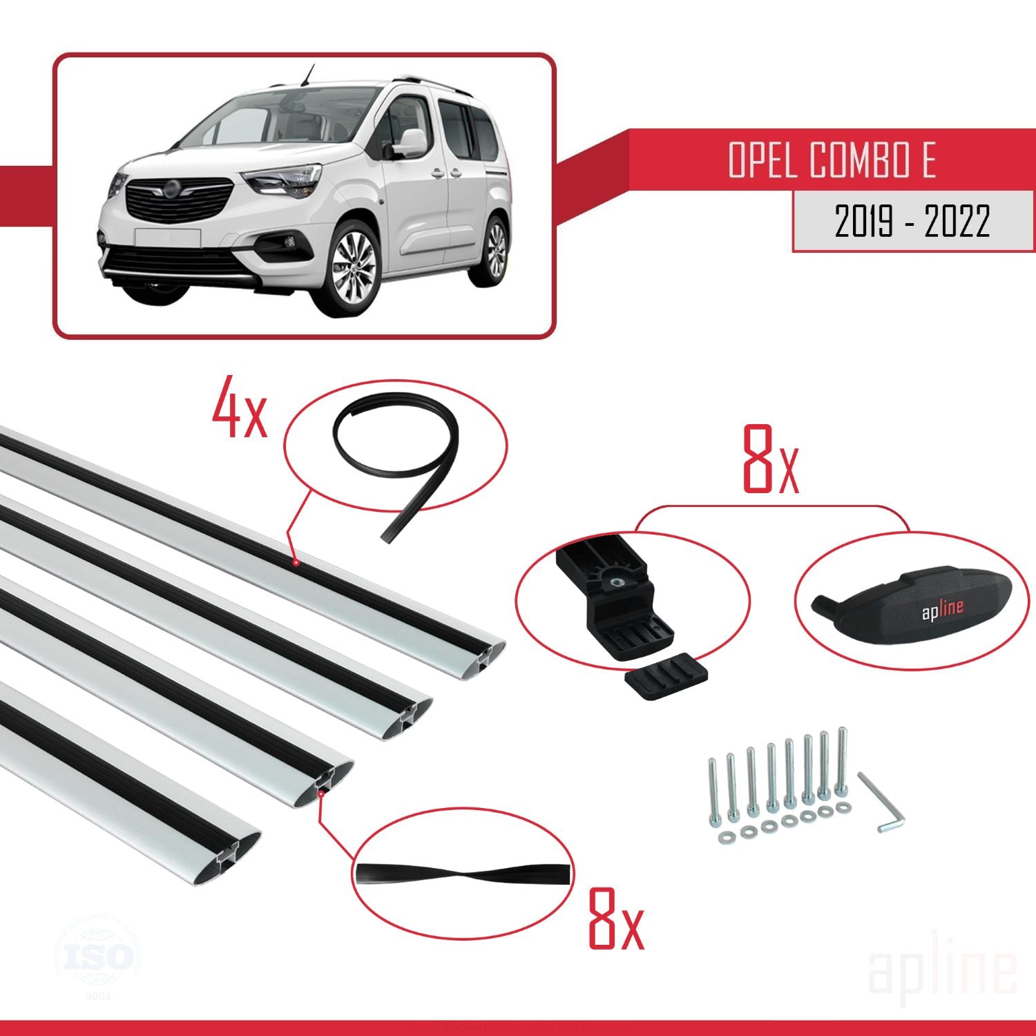 Compatible avec Opel Combo E 2019-2022 BASIC Model Barres de Toit Railing Porte-Bagages de Voiture Gris Aluminium 4 Barres