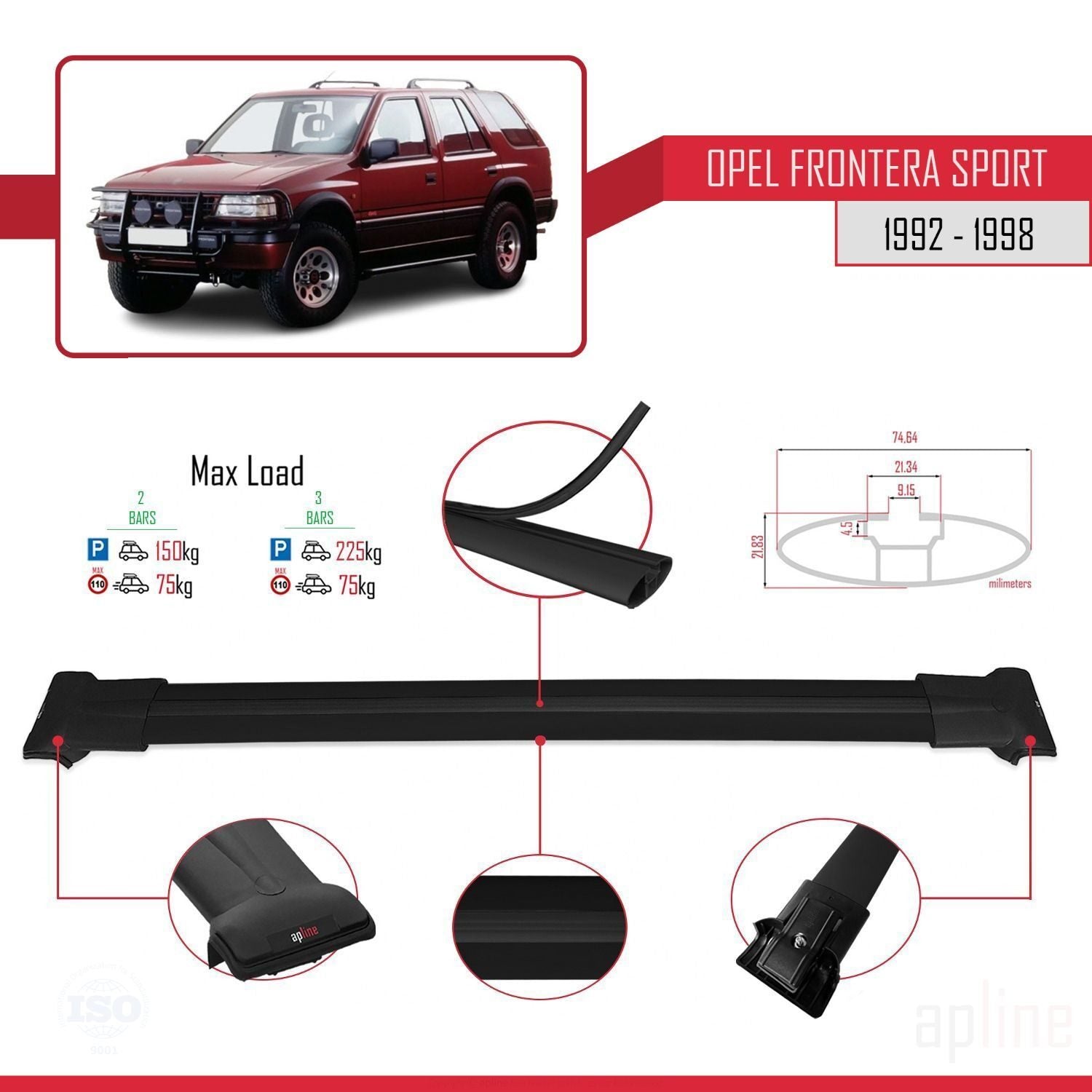 Compatible avec Opel Frontera Sport 1992-1998 FLY Model Barres de Toit Railing Porte-Bagages de Voiture Noir Aluminium 2 Barres