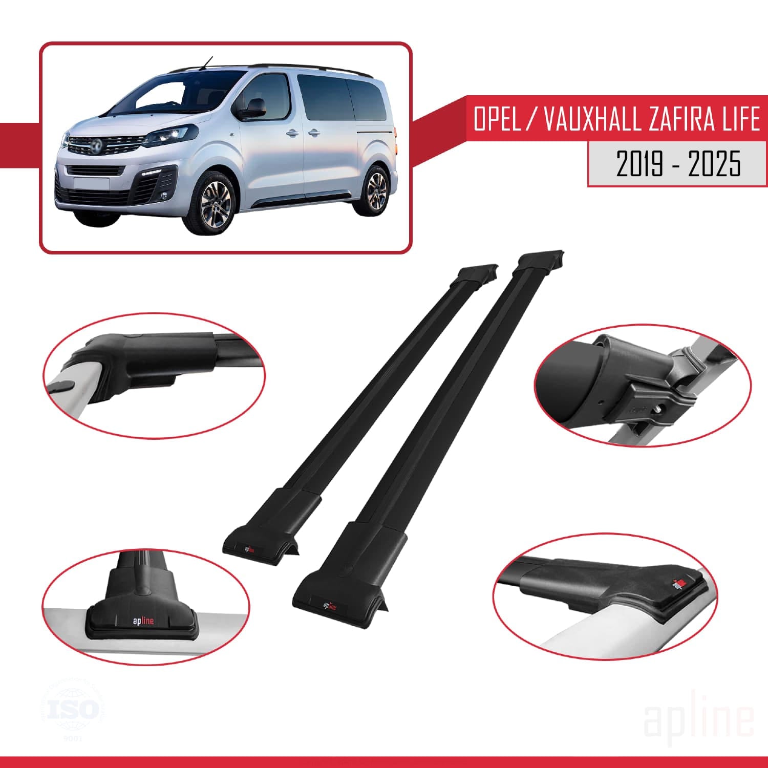 Compatible avec Opel Zafira Life 2019-2025 FLY Model Barres de Toit Railing Porte-Bagages de Voiture Noir Aluminium 2 Barres