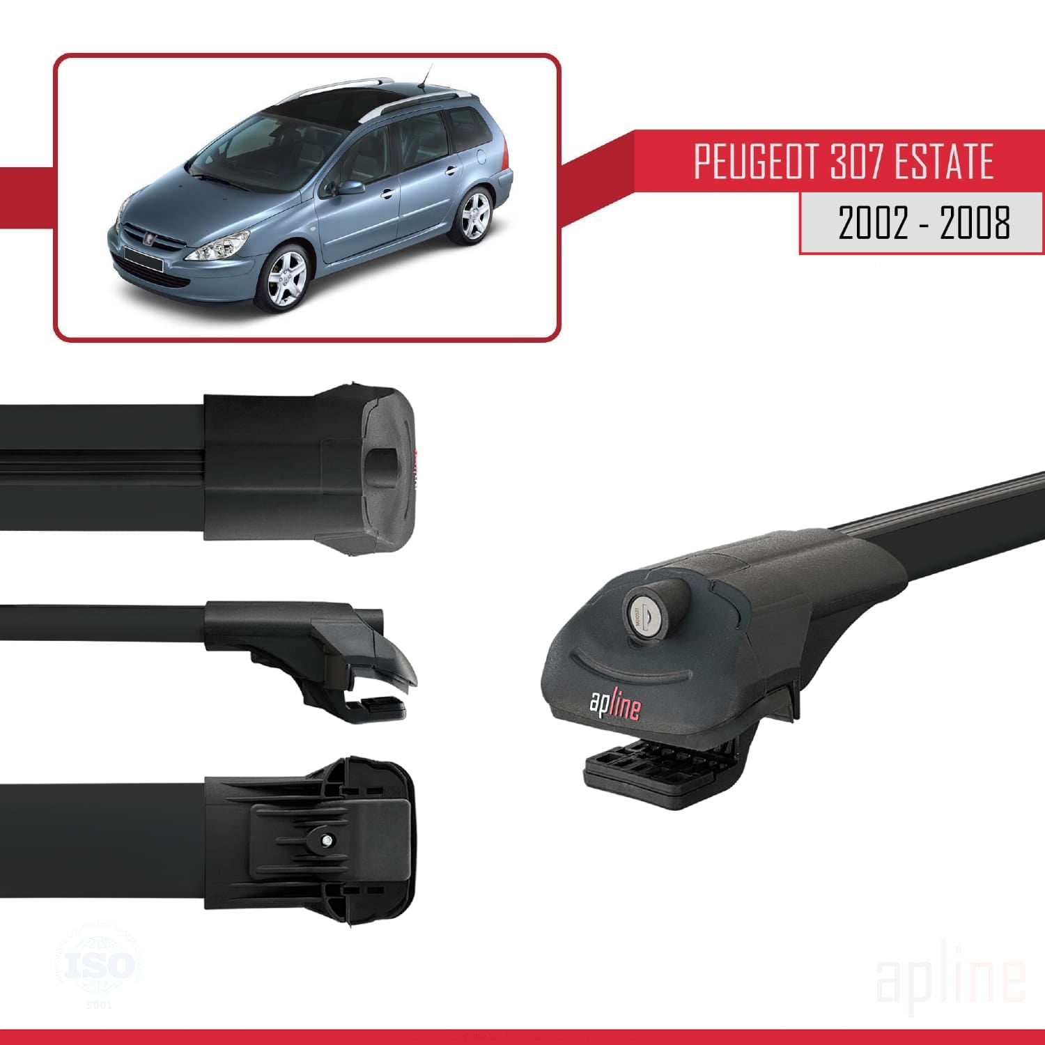 Compatible avec Peugeot 307 Break 2002-2008 ACE-1 Barres de Toit Railing Porte-Bagages de Voiture Noir Aluminium 3 Barres