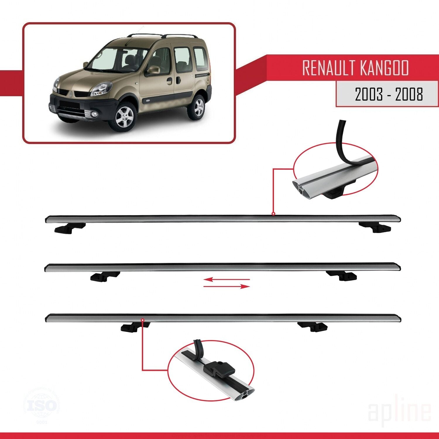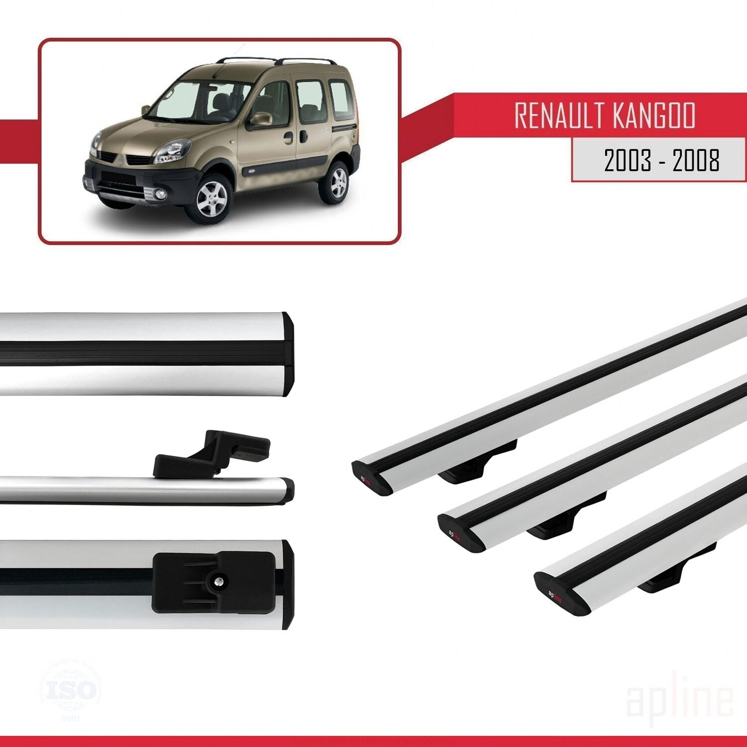 Compatible avec Renault Kangoo (X76) Post-Facelift 2003-2008 BASIC Model Barres de Toit Railing Porte-Bagages de Voiture Gris Aluminium 3 Barres