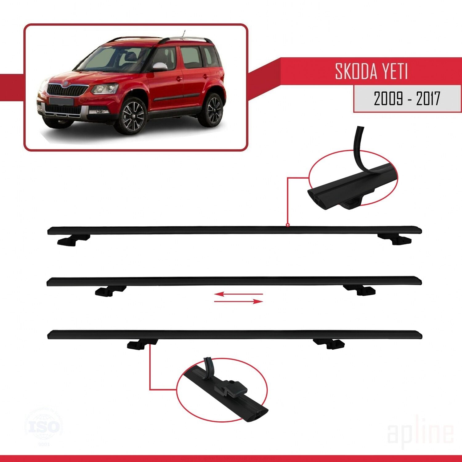 Compatible avec Skoda Yeti 2009-2017 BASIC Model Barres de Toit Railing Porte-Bagages de Voiture Noir Aluminium 3 Barres