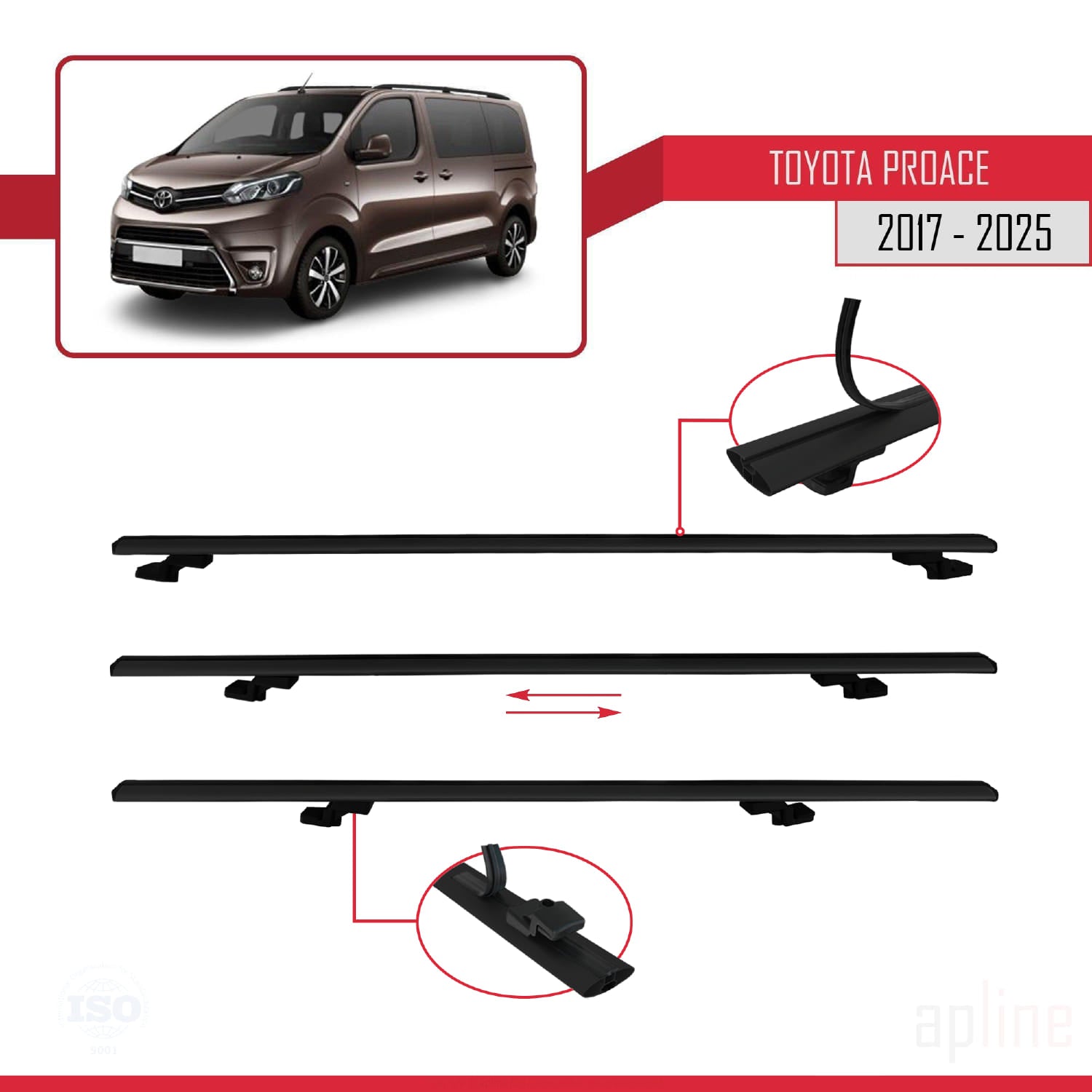 Compatible avec Toyota Proace 2017-2025 BASIC Model Barres de Toit Railing Porte-Bagages de Voiture Noir Aluminium 4 Barres