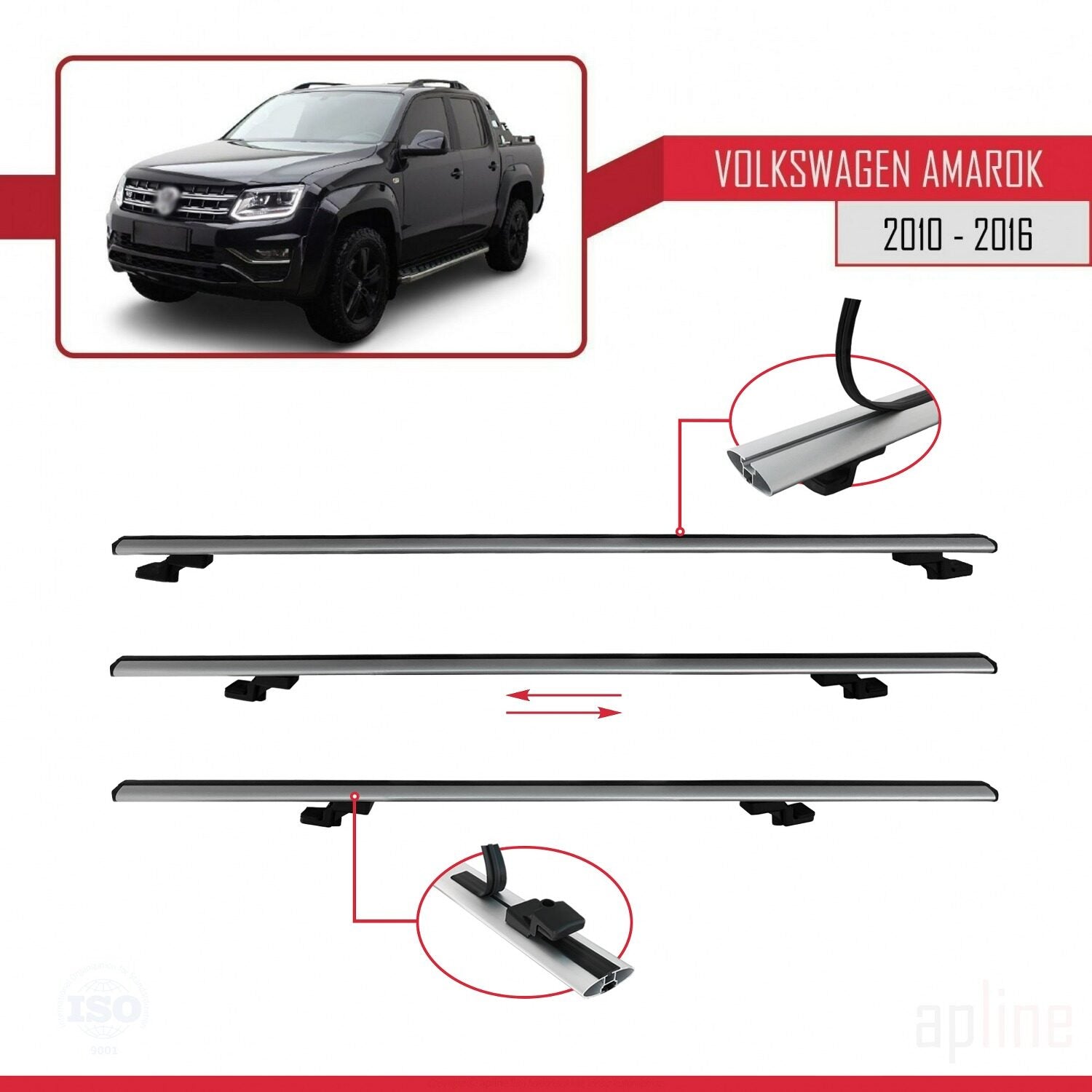 Compatible avec Volkswagen Amarok (2F) Pre-Facelift 2010-2016 BASIC Model Barres de Toit Railing Porte-Bagages de Voiture Gris Aluminium 2 Barres