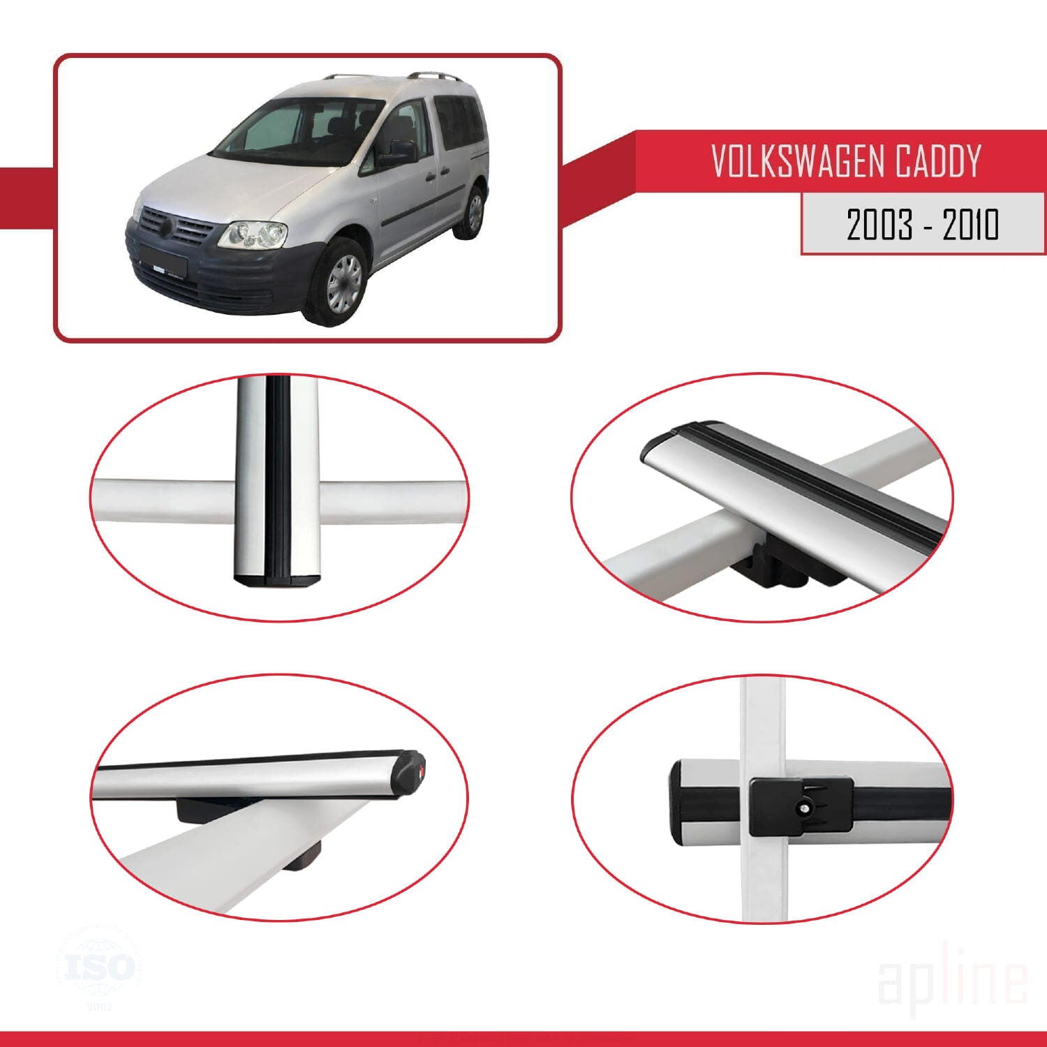 Compatible avec Volkswagen Caddy 3 (2K) 2003-2010 BASIC Model Barres de Toit Railing Porte-Bagages de Voiture Gris Aluminium 4 Barres
