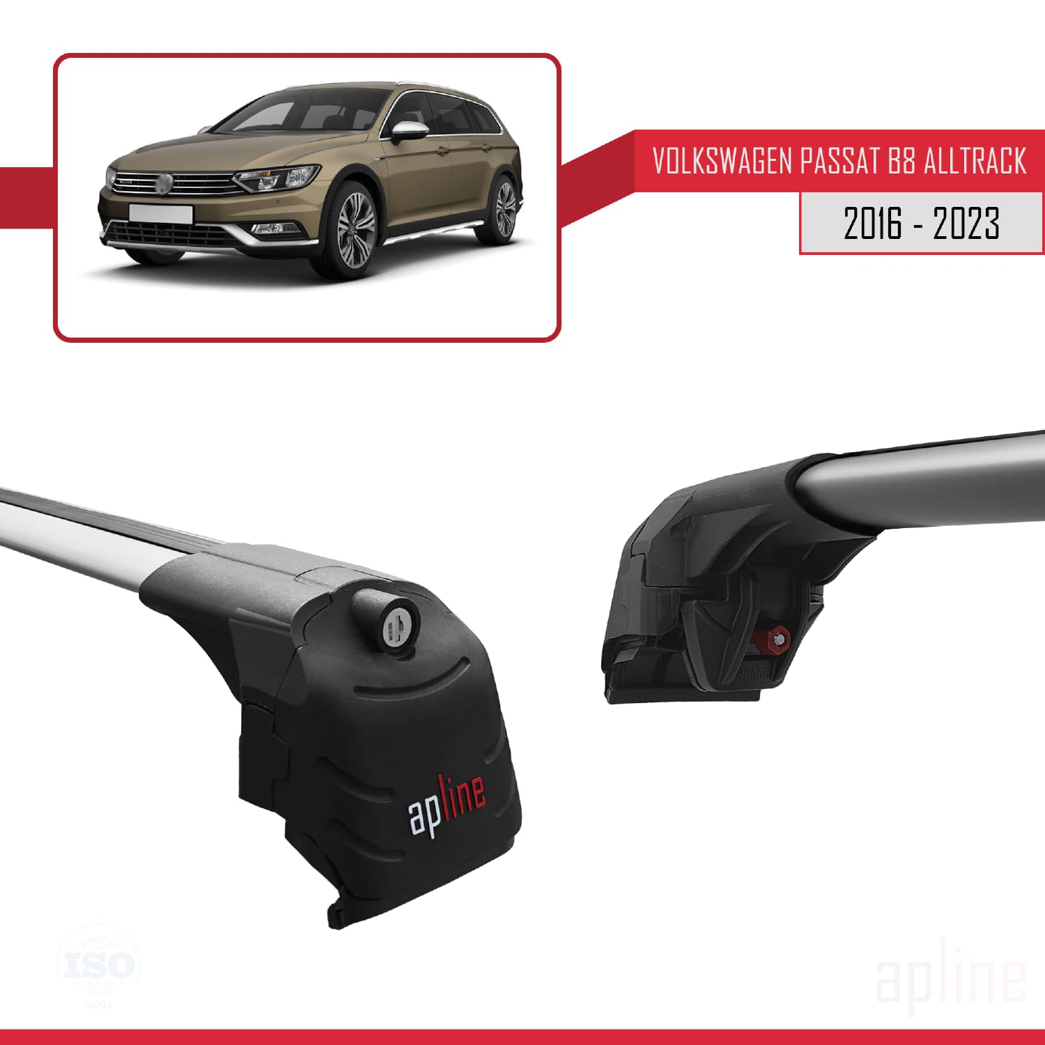 Compatible avec Volkswagen Passat B8 (3G) Alltrack 2016-2023 ACE-2 Barres de Toit Railing Porte-Bagages de Voiture Gris Aluminium 2 Barres