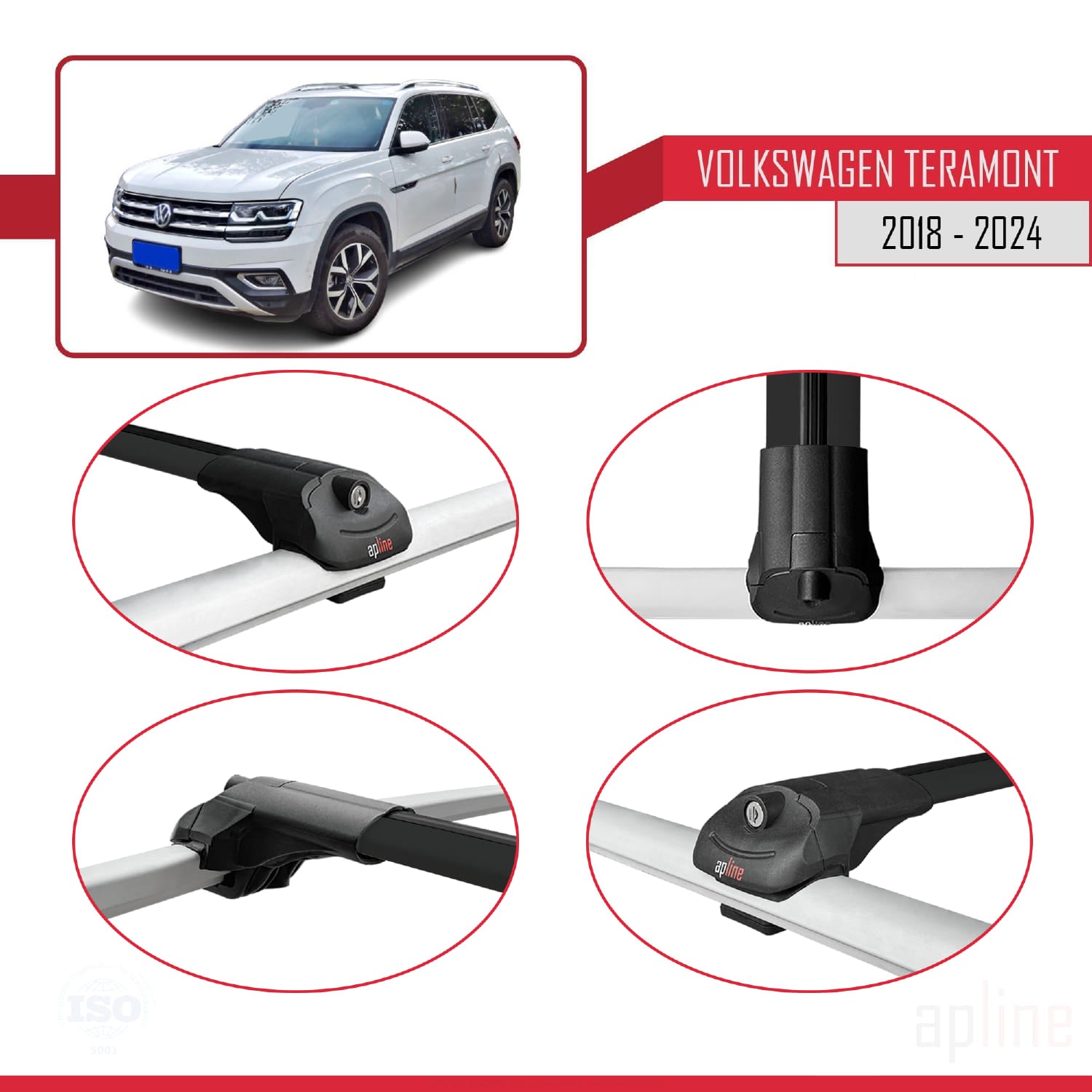 Compatible avec Volkswagen Teramont (CA1) 2018-2024 ACE-1 Barres de Toit Railing Porte-Bagages de Voiture Noir Aluminium 3 Barres