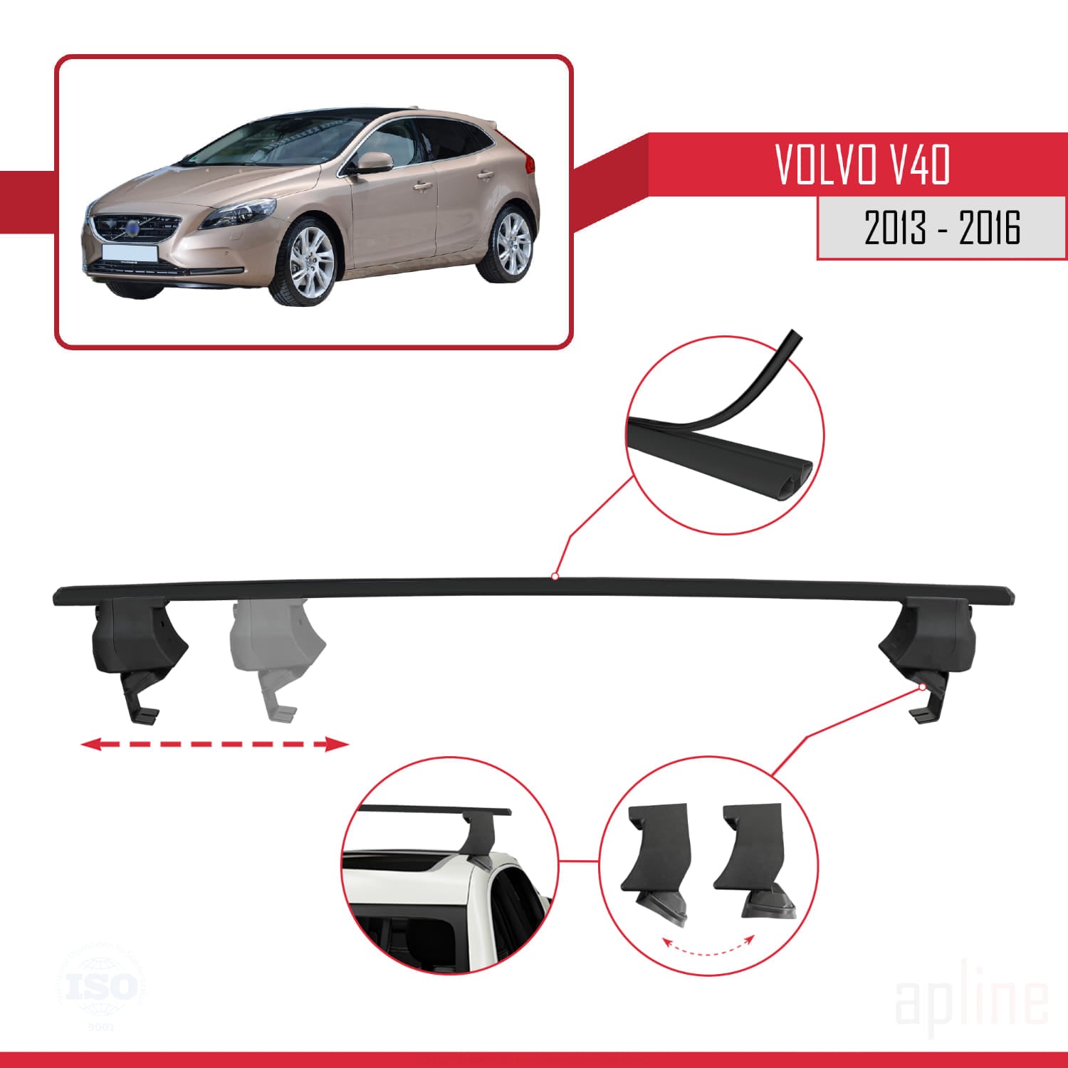 Compatible avec Volvo V40 Pre-Facelift 2013-2016 ACE-4 Barres de Toit Railing Porte-Bagages de Voiture Noir Aluminium 2 Barres
